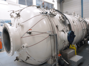 C’est dans un caisson hyperbare que, pendant 14 jours, 3 plongeurs d’essai, assistés d’une infirmière militaire, ont été enfermés pour tester la résistance de leurs corps et du recycleur à une pression équivalente à 265 m de profondeur, soit environ 26 bars.