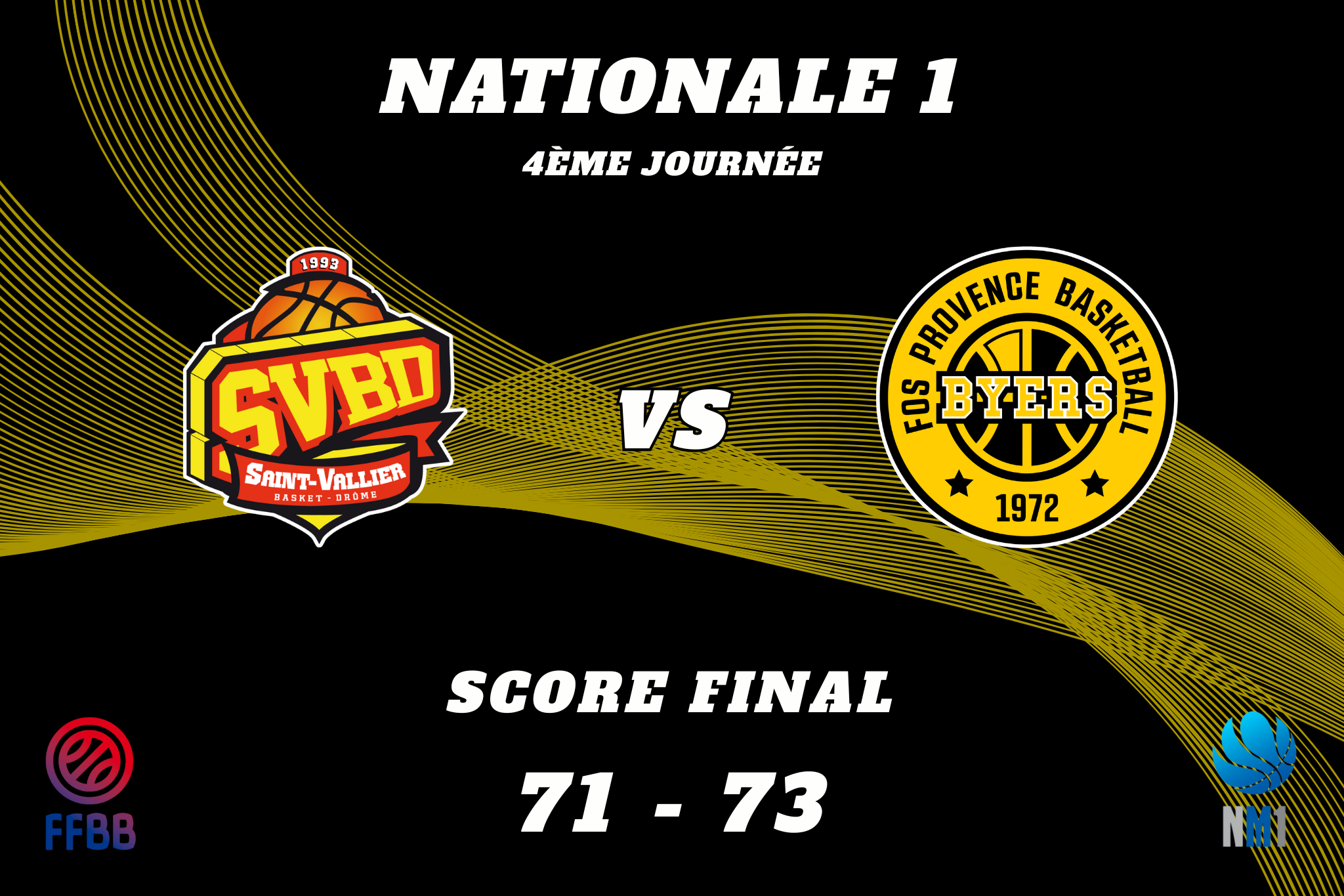 Les deux équipes se rendent alors coup pour coup, et c’est Saint-Vallier qui vire en tête à la pause (48-43, 20’). Rien n’est fait, mais les Fosséens restent dans le match grâce à leur défense et à quelques éclairs de Dary et Mutuale.