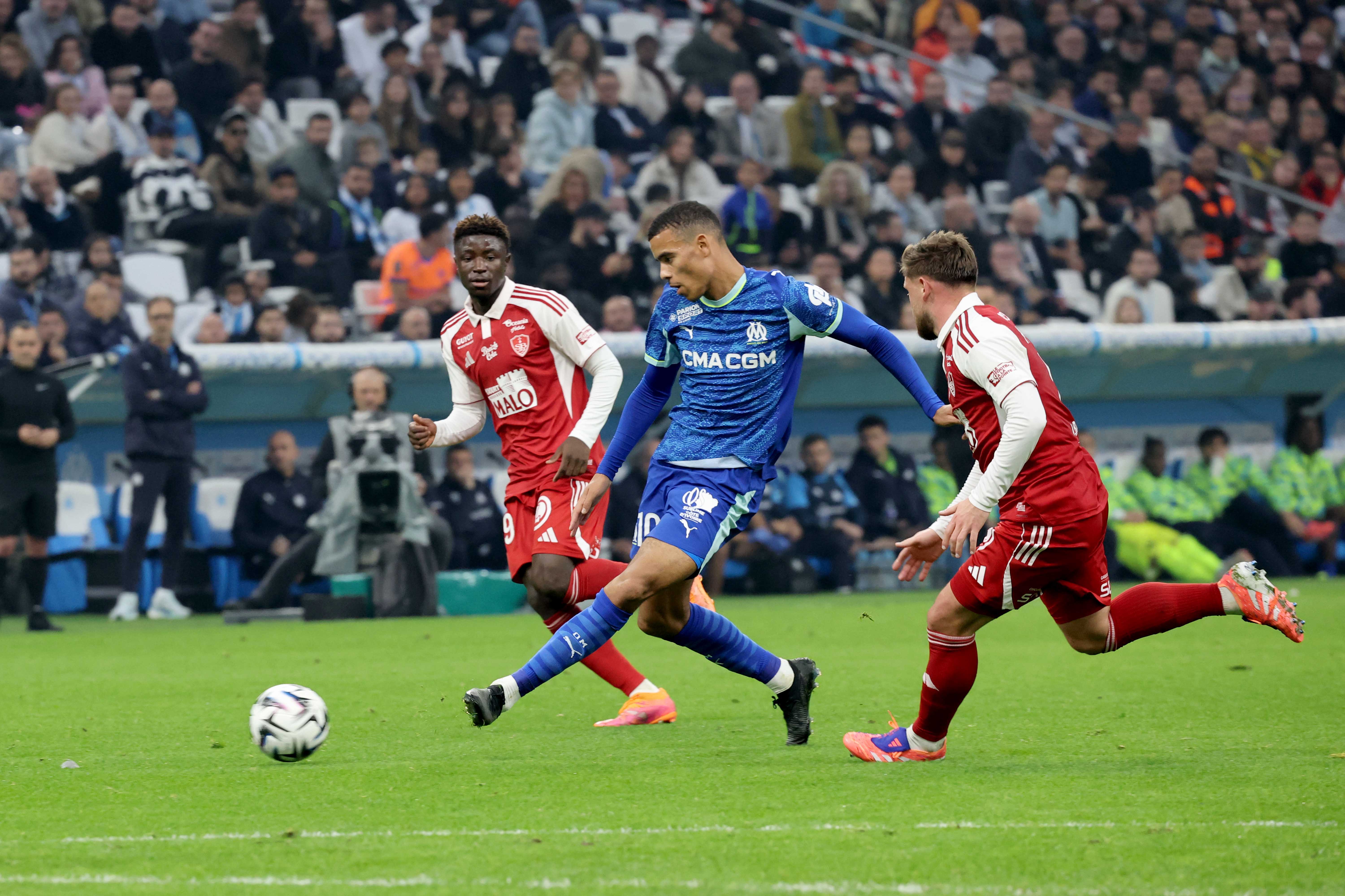 En face, Éric Roy misait sur un Brest compact en 4-3-3, mais fragilisé par une série de cinq matches sans victoire. Les intentions marseillaises, elles, sont claires dès les premières minutes : pressing haut, jeu en triangle et verticalité. À la 6ᵉ minute, Aubameyang rate une première balle de 1-0 face à Majecki. Greenwood, déjà dans tous les bons coups, se procure deux situations dans la foulée, avant qu’Angel Gomes ne fasse chavirer les tribunes.